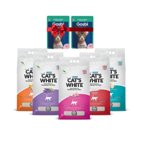 Cat's White 5L Clumping Cat Litter Bundle – 5 Bags (Mixed Scents) + 2 Free Gosbi Pouches