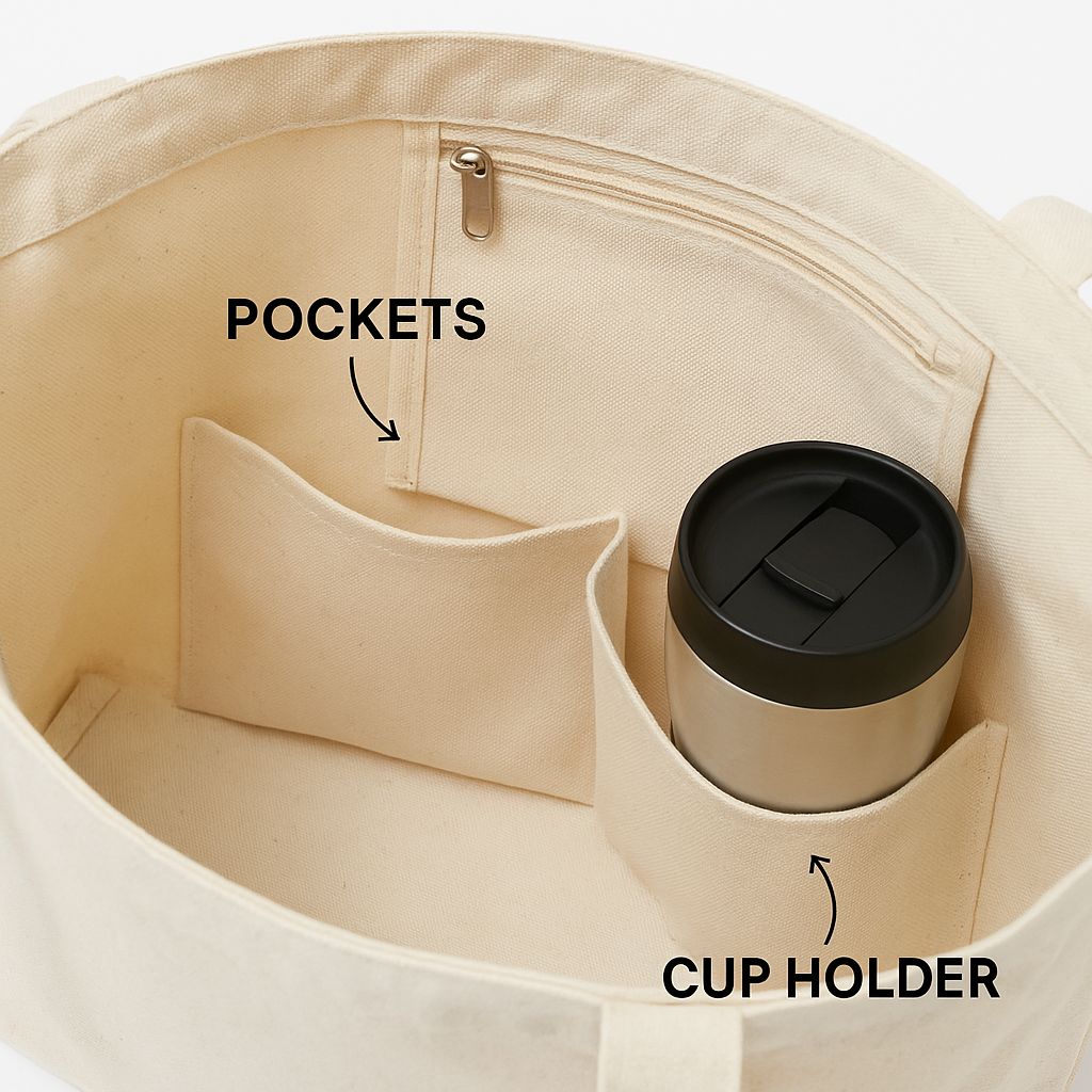 • Built-in cup holder to carry your tumbler or bottle safely 🥤