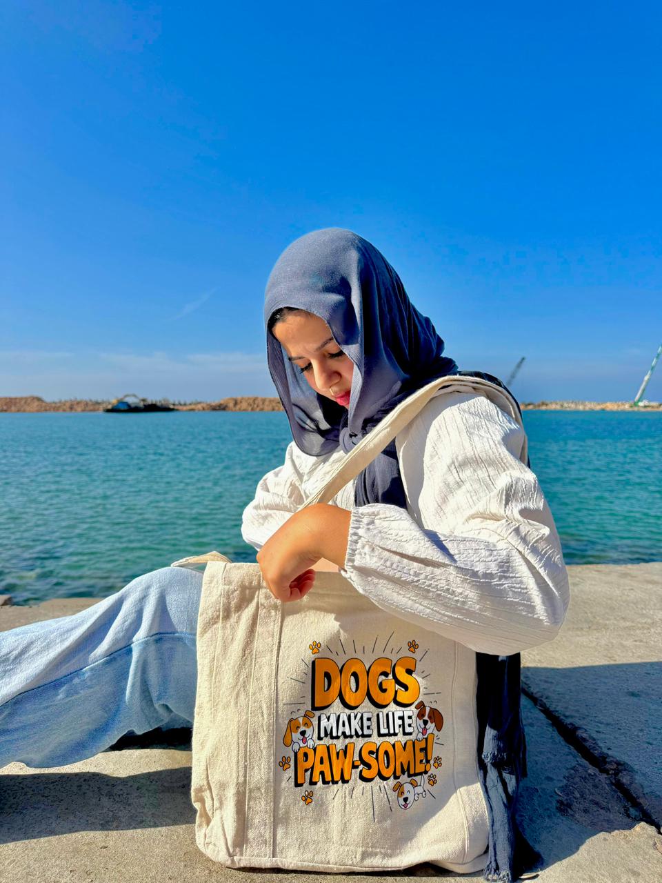 Carry your love for dogs wherever you go 🐾 with this adorable “Dogs Make Life Paw-some!” canvas tote bag!