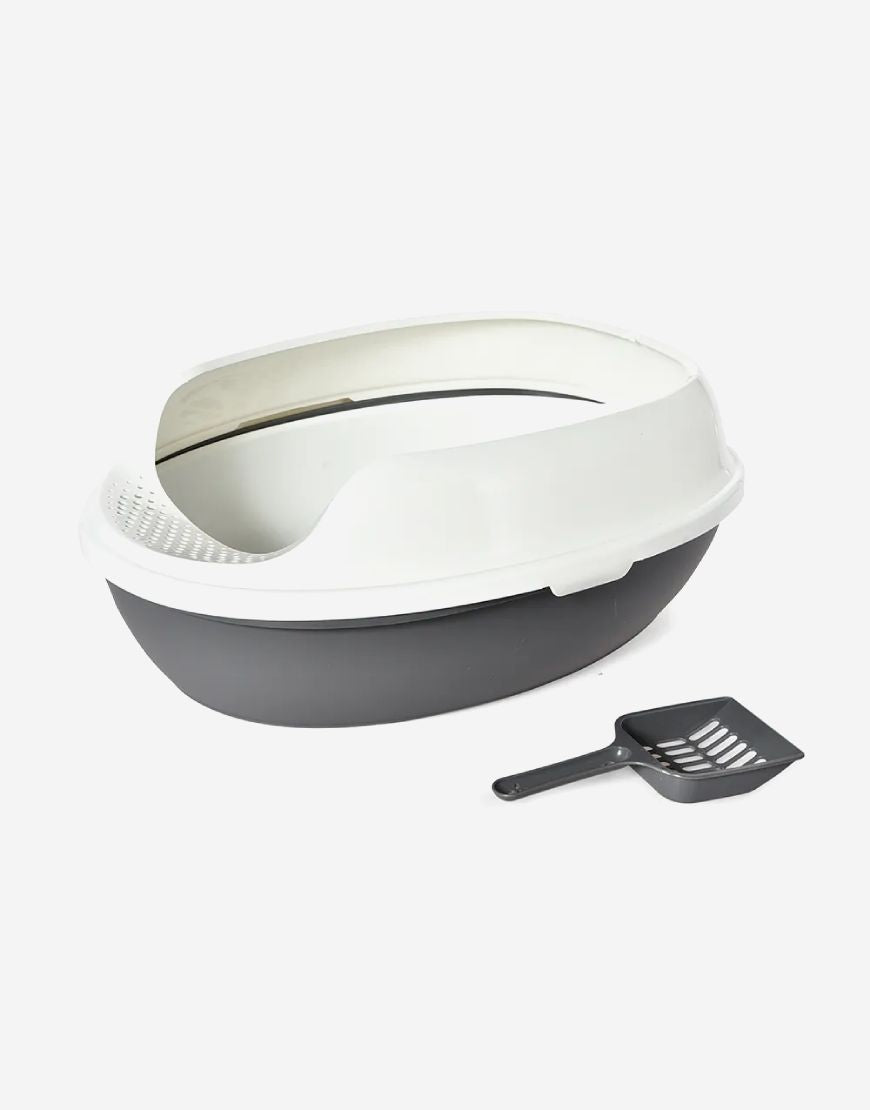 This cat toilet litter box features a detachable design splash-proof entrance and included scoop offering a clean and user-friendly solution for everyday feline hygiene.