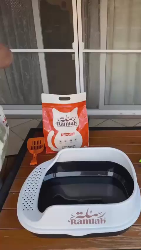 Experience the ultimate in cat litter with Ramla Premium Cat Litter. Made with special clay and activated carbon, it's scientifically designed to eliminate odors and moisture. The refreshing Oud scent adds a soothing touch to your home while the low-dust formula keeps your cat happy and your home fresh.