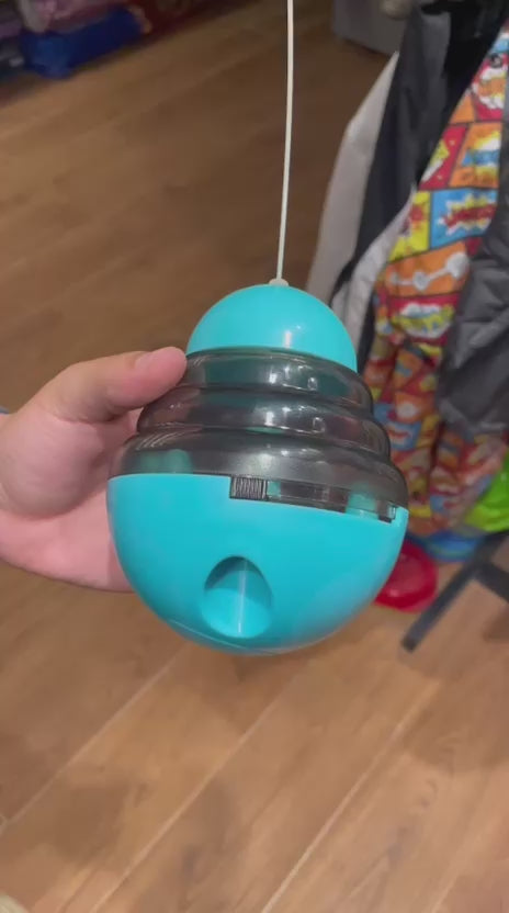 "The Tumbler Cat Treats Ball Toy is the perfect interactive toy for your feline friend. Its adjustable design and stimulating food dispenser feature provide mental and physical exercise, while reducing boredom and anxiety. Keep your cat entertained and healthy with this fun and functional toy."